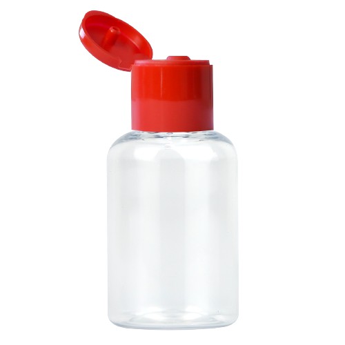 FRASCO 30 ML DE PLÁSTICO TAMPA FLIPTOP VERMELHA.